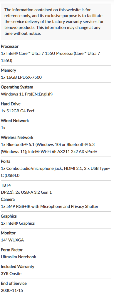 Ultra 7, Win11Pro, Ultra Slim, Touch Screen. 3 Year Warranty. (untill April 2028).