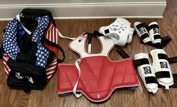 태권도 기어세트 팝니다. 이름도 써있고 사용감이 많아 15불에 판매 합니다.