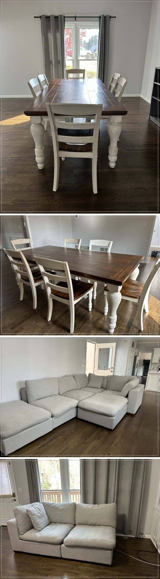 식탁은 $1400 에 샀는데 구입한지 일년이 안되었는데 갑자기 타주로 가는 바람에 내 놓습니다. 거의 새것으로 보시면됩니다. 합해서 $1200d
