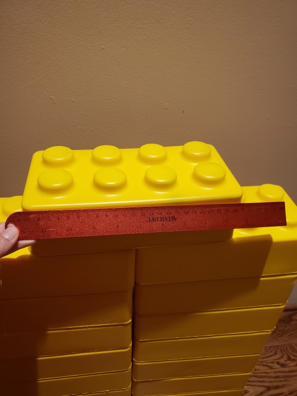 브릭 하나당 사이즈가 가로 25cm 세로 12.5cm이고, 빨강, 파랑, 노랑 총 42개입니다.