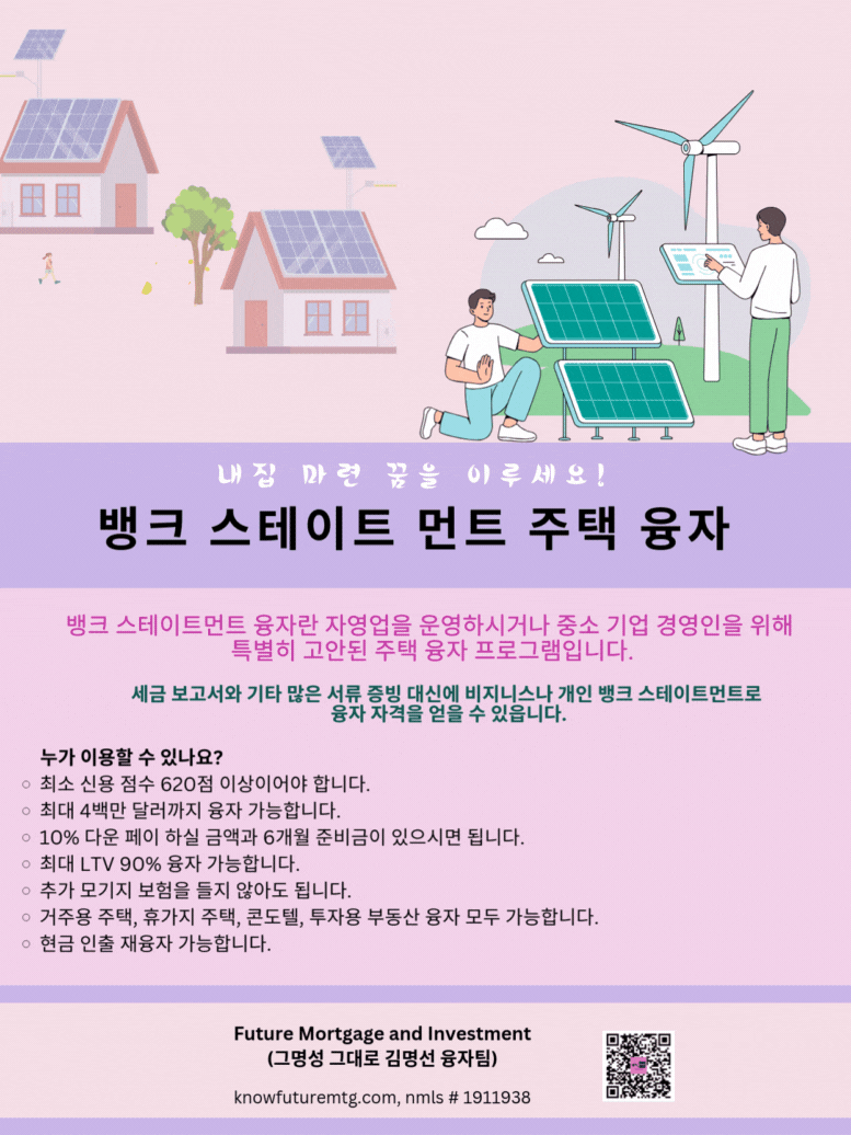 주의 사항: 융자는 돈 (신용)이고 돈 (신용) 은 빚입니다. 융자를 잘 활용하면 자산 증식이나 경제 생활에 큰 이익을 주지만, 그렇지 못할 경우, 집을 잃거나 경제적인 파국의 원인이 될수 있읍니다. 육체적인 고통이나 정신적인 고통은 911을 누르시고, 채무로 인한 경제적인 고통은 CFPB, Financial Counselor 혹은 가까운 융자 전문가에게 문의 하셔요.