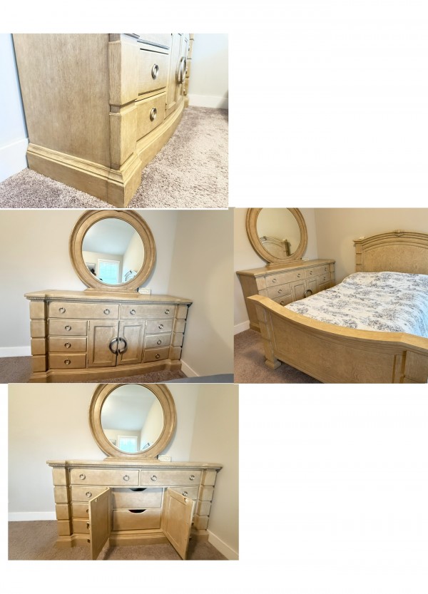 퀸 사이즈 침대 샛트 팝니다. 침대 와 거울 서랍장 .