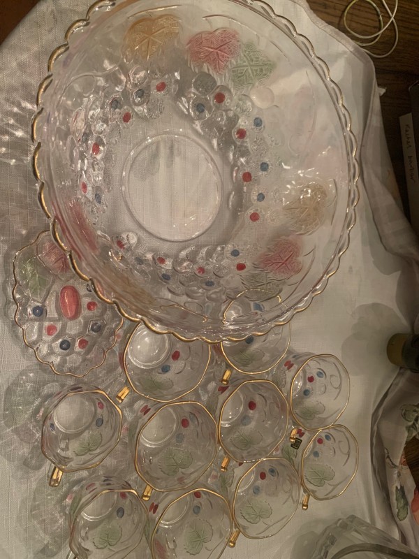 완료 Grace Collection Hand Painted Punch Bowl Set