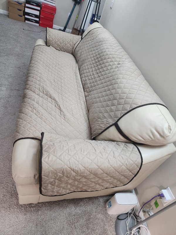 Repair Tape도 붙여보고 했는데, 결국엔 사진과 같이 slip cover를 이용해서 미관상 보기 안좋은 부분은 가려서 써왔습니다.