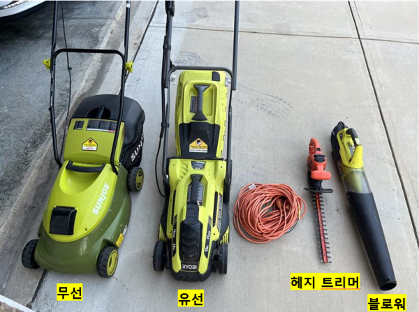 올해 부터는 잔디 관리 업체를 이용하여 기존에 사용하던 유/무선 잔디깎기 2종, 그리고 blower 판매합니다.