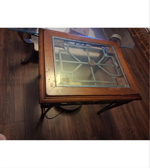 튼튼한 엔틱 나무유리 테이블 20불