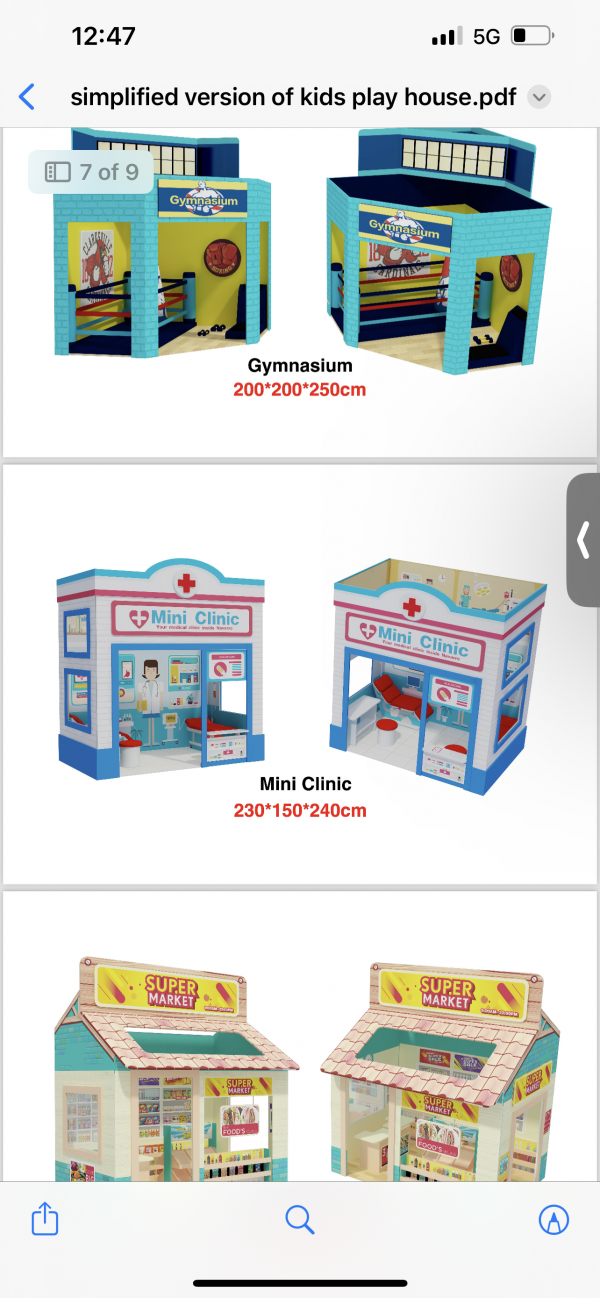 병원, 마켓, 식당으로 3개 있습니다. 아이들 8명정도 들어가는 크기입니다.