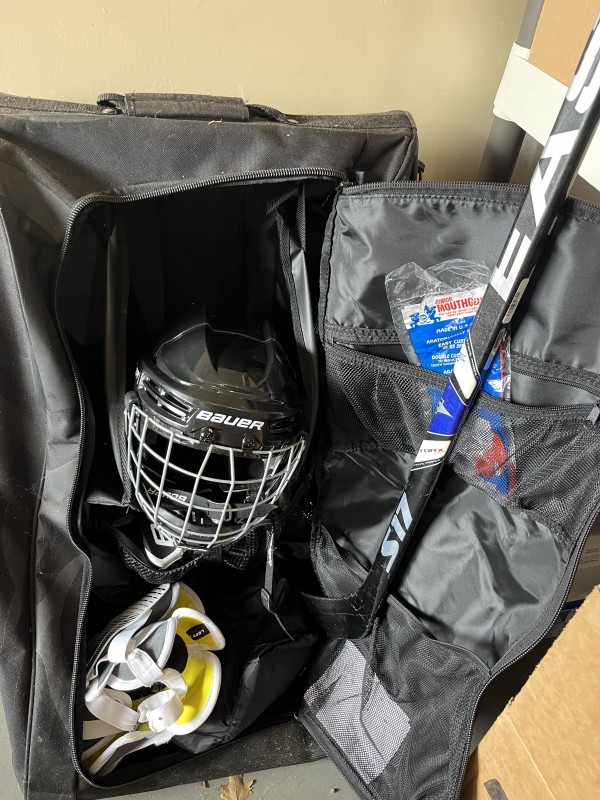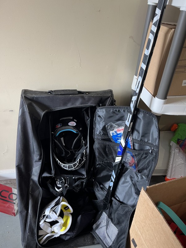 아이 하키 가방만 백불 넘게 줬구요 핼멧 싸이즈는 6 1/2 , 보호대, 하키 스틱등등 다 한번에 드립니다~~~