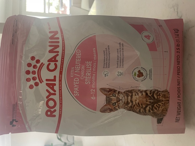 로얄캐닌 고양이 사료(6~12개월,중성화 시킨 고양이 전용), 오픈하지 않은 새것이구요 사진 보시면 유통기한 25년까지입니다. - $10