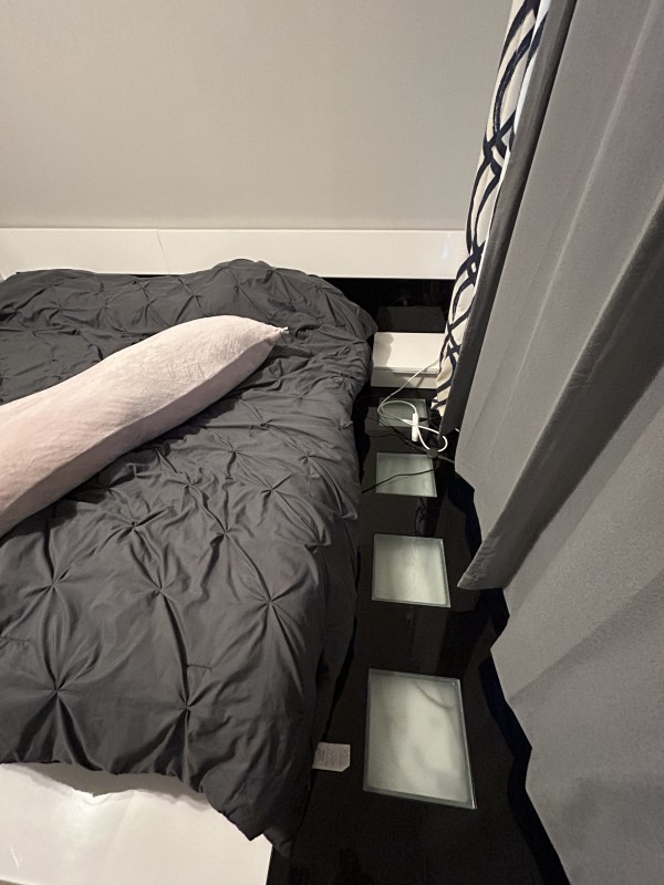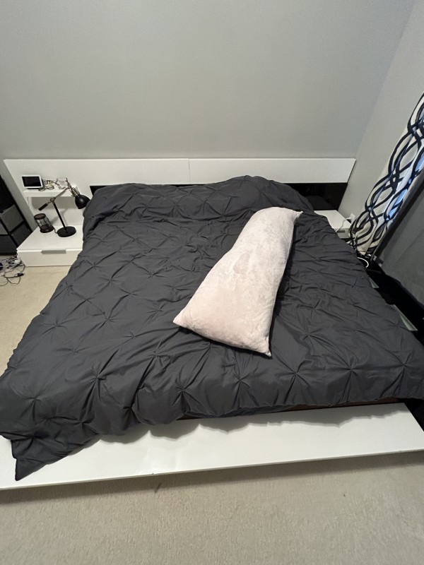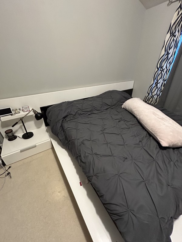 3년 사용한 킹 사이즈 침대 프레인 팔아요. 사용감 있습니다. 원래 가격 1200불. 픽업: 6월 20일 이후.