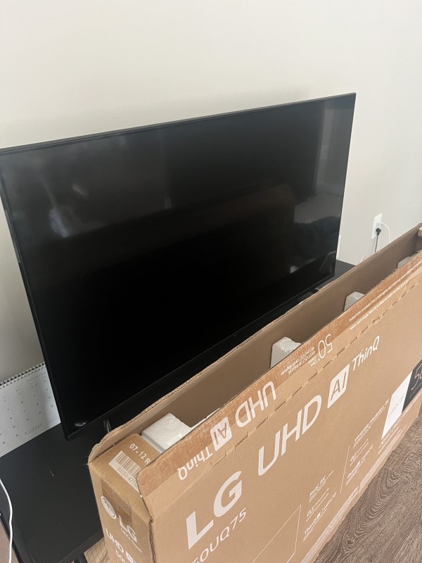 TV : 모델명 50UQ75, 판매가격 $150, 필요하시면 TV 선반도 같이 드립니다(이케아 구매)