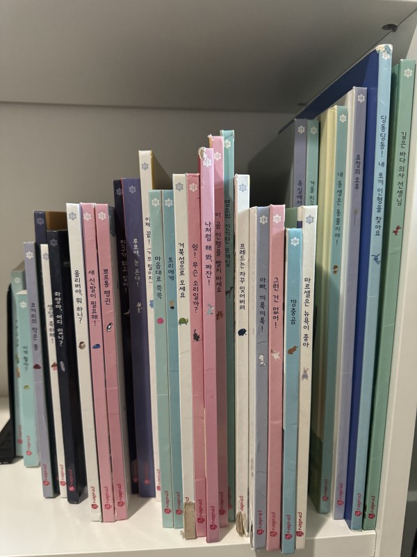 아이가 정말 좋아하던 책이라 이걸로 책육아 제대로 했습니다 두꺼운 재질은 상태 괜찮으나 중간중간 얇은 재질 책들은 찢어진 부분도 있어 저렴히 내놓습니다