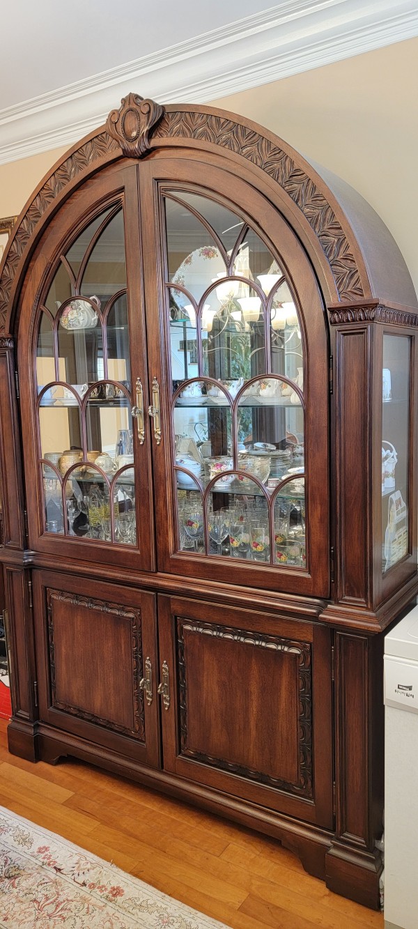 table, 8chairs, arched cabinet and buffet.