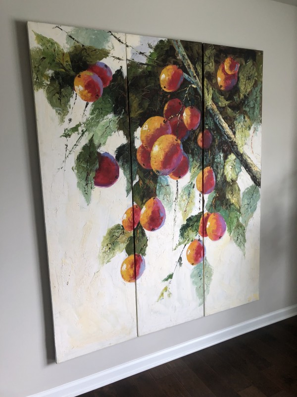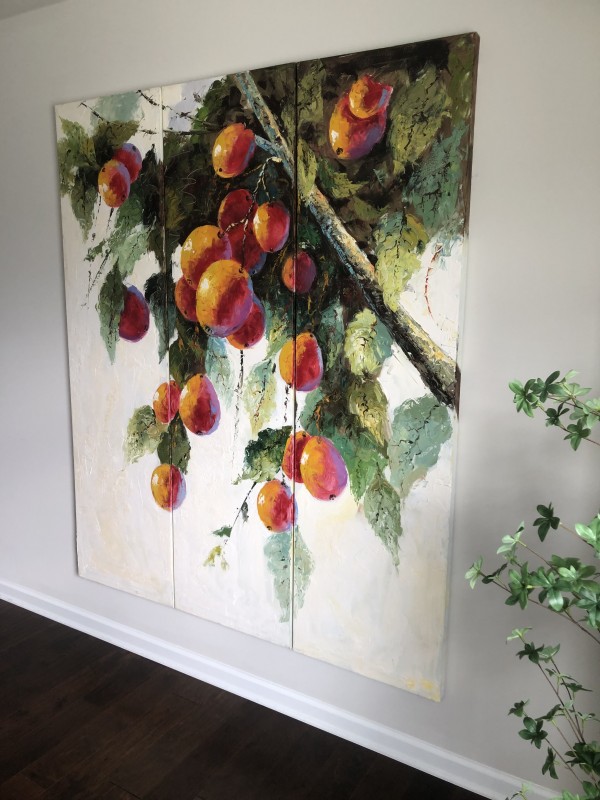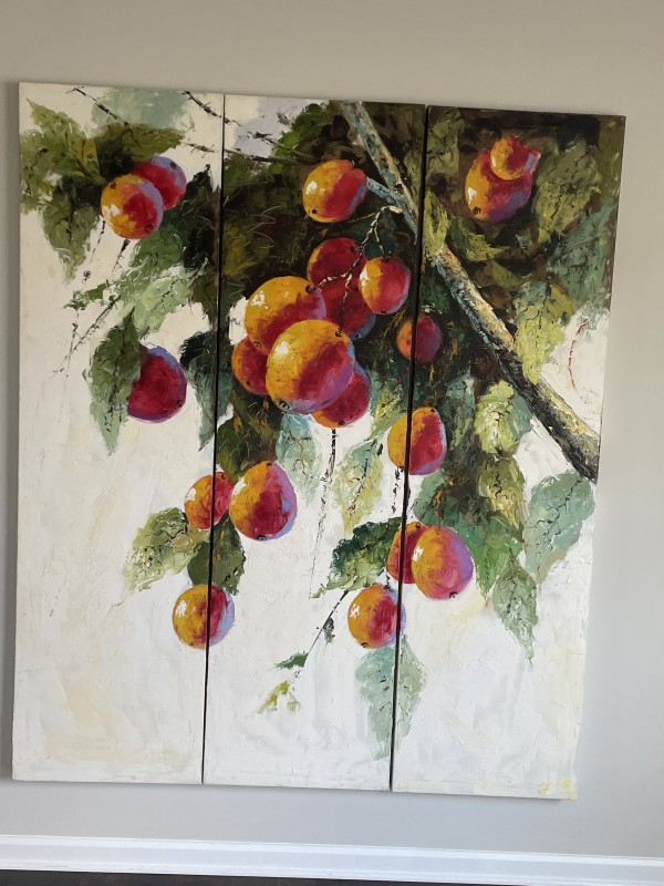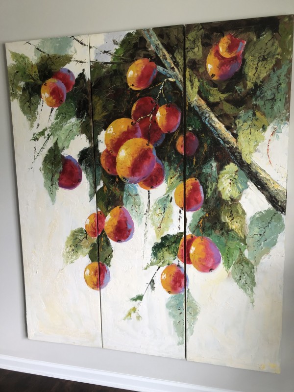 복숭아나무열매를 그린 아름다운 색상과 조화가 잘 오우러진 작품