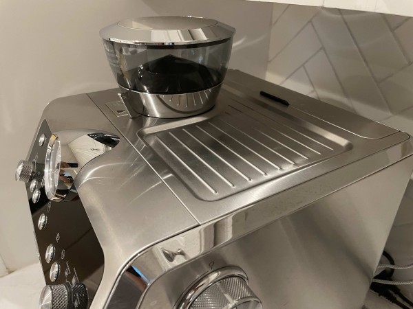 커피 그라인더, 스마트 탬퍼, 밀크 스팀, Hot water dispenser 일체형 all in one 제품 입니다.