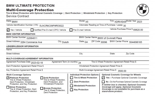 2023년 2월 18일에 BMW 귀넷카운티에서 신차 구입하였습니다.