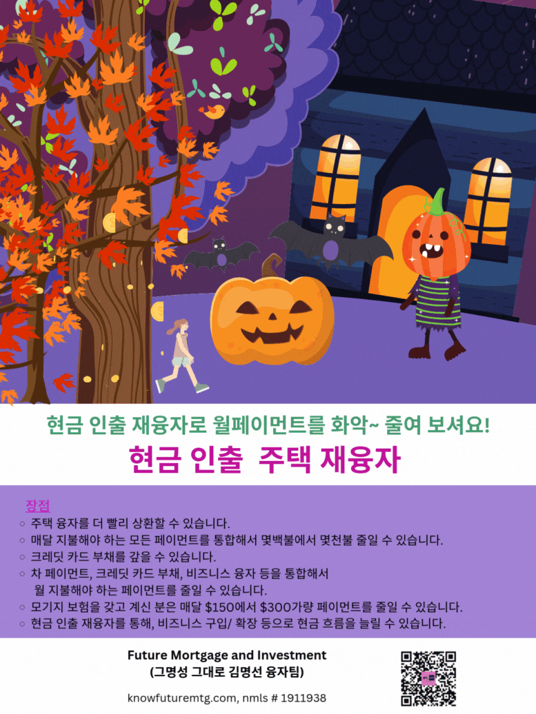 주의 사항: 융자는 돈 (신용)이고 돈 (신용) 은 빚입니다. 융자를 잘 활용하면 자산 증식이나 경제 생활에 큰 이익을 주지만, 그렇지 못할 경우, 집을 잃거나 경제적인 파국의 원인이 될수 있읍니다. 육체적인 고통이나 정신적인 고통은 911을 누르시고, 채무로 인한 경제적인 고통은 CFPB, Financial Counselor 혹은 가까운 융자 전문가에게 문의 하셔요.