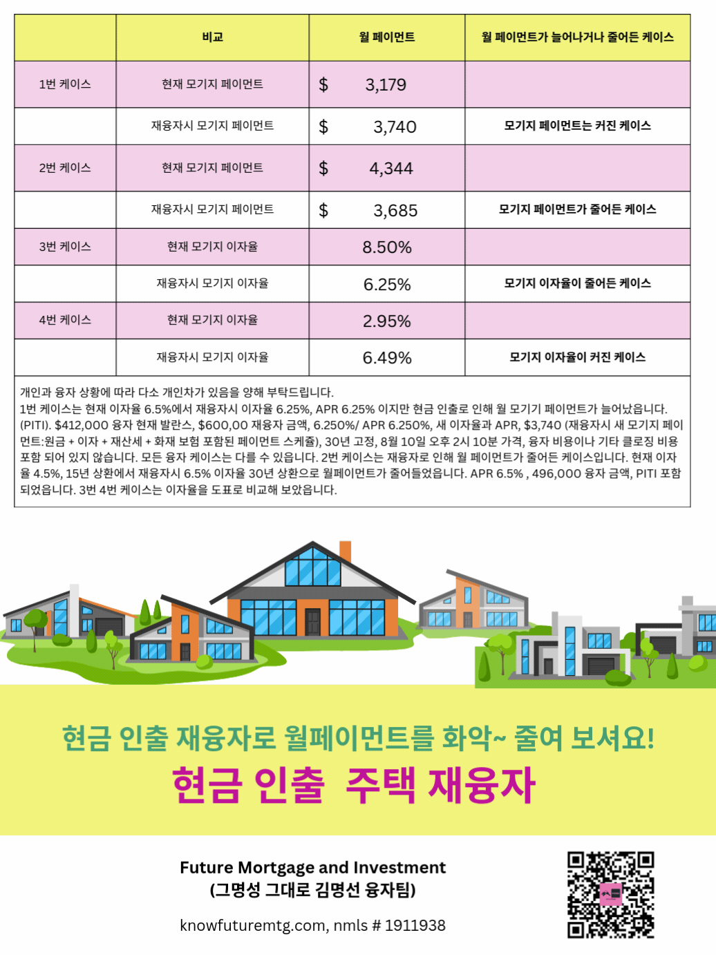 팝니다 현금 인출 재융자로 월페이먼트를 화악 ~ 줄여 보셔요!