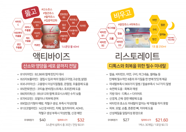 ☀︎ 팀파트너 회원가입시 20% 할인 가능 (파워칵테일 + 리스토레이트/액티바이즈 세트, $143.2)