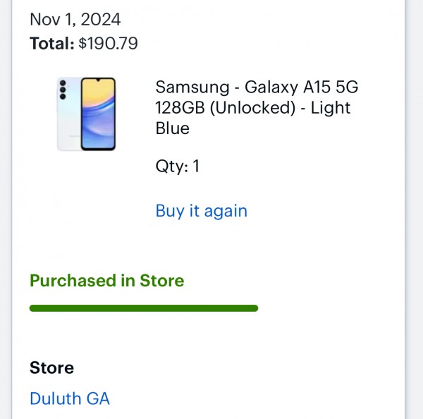 오늘 구매한 삼성 A15 핸드폰이고 구매 가격 190.79 에서 20불 깎아 드립니다~ 혹 구매 희망하시는 분은 47O 679 56O4로 연락주세요~