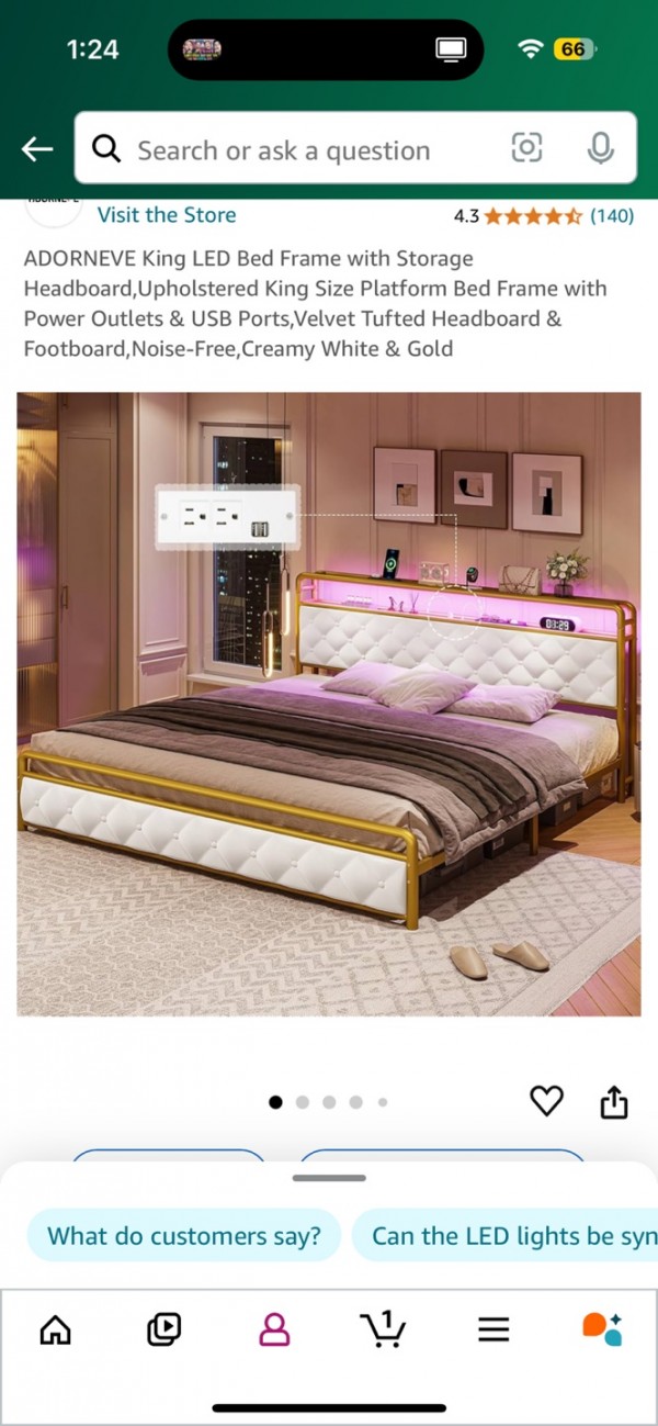 1. 흰색/골드 벨벳 킹사이즈 베드 프레임 $150