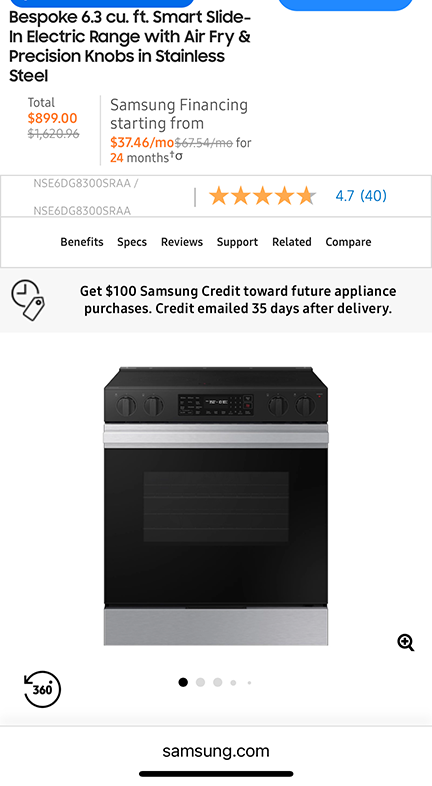 6.3 cu ft Electric Range 입니다