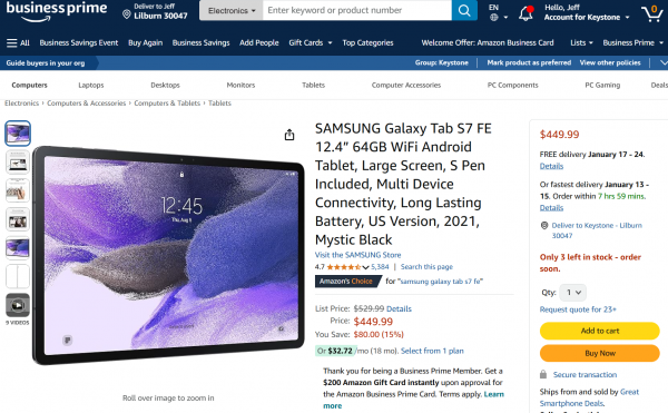 - Samsung Galaxy Tablet S7 FE in Perfect Condition