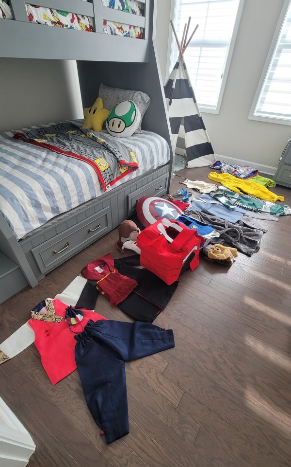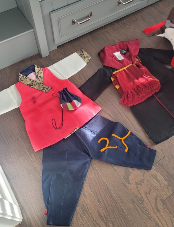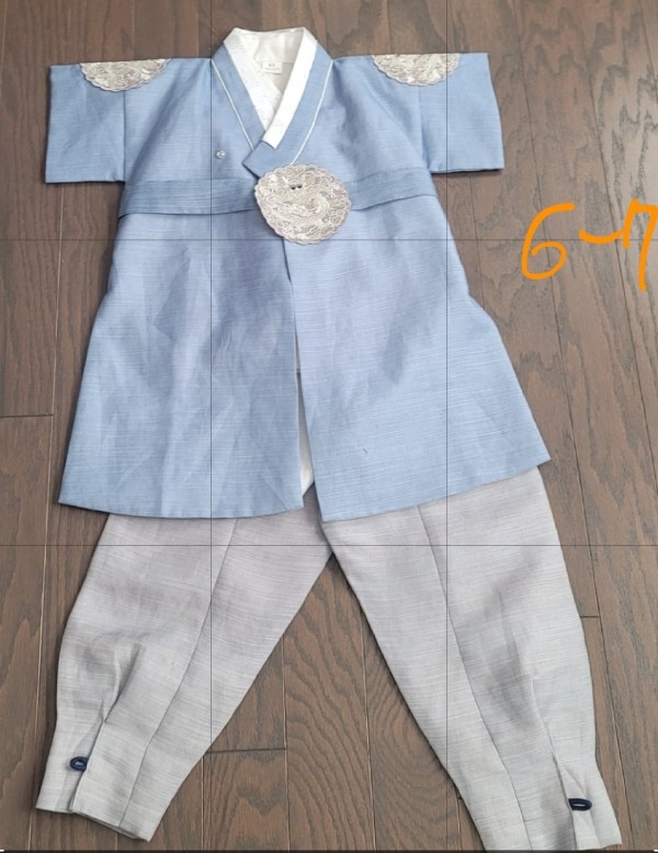6y blue 한복 $25 -세번 정도 입었고 이번 new year에 입어서 구김이 좀 있어요.