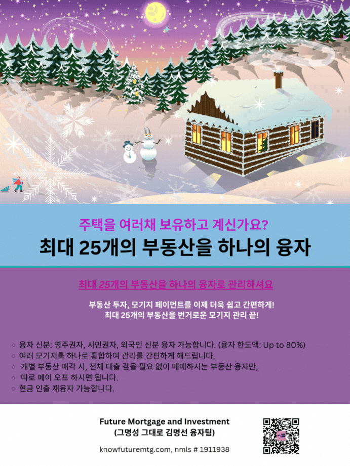 최대 25개의 부동산을 하나의 융자로 관리하세요 번거로운 모기지 관리 끝!
