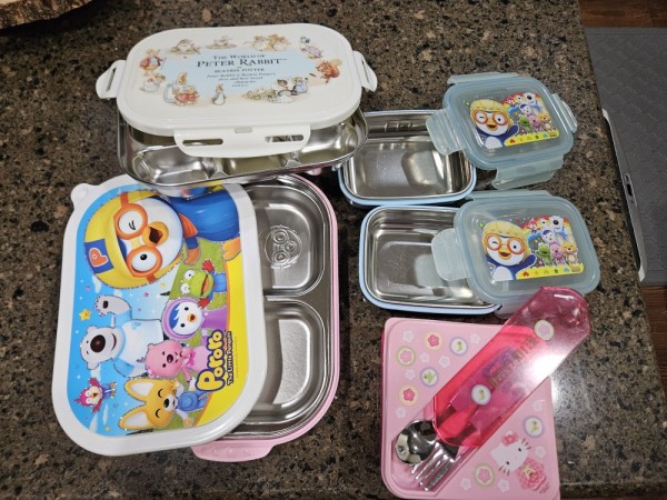 스텐 도시락 2개, 간식 도시락 2개, 키티 도시락까지...