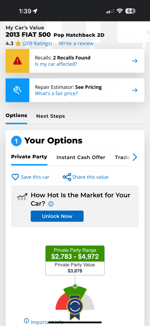 완료 중고차 팝니다. / 2013 Fiat 500