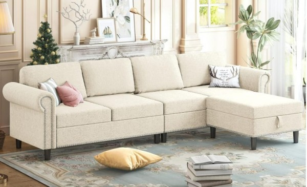완료 베이지색 4인용 쇼파 (상태 양호) 판매합니다.