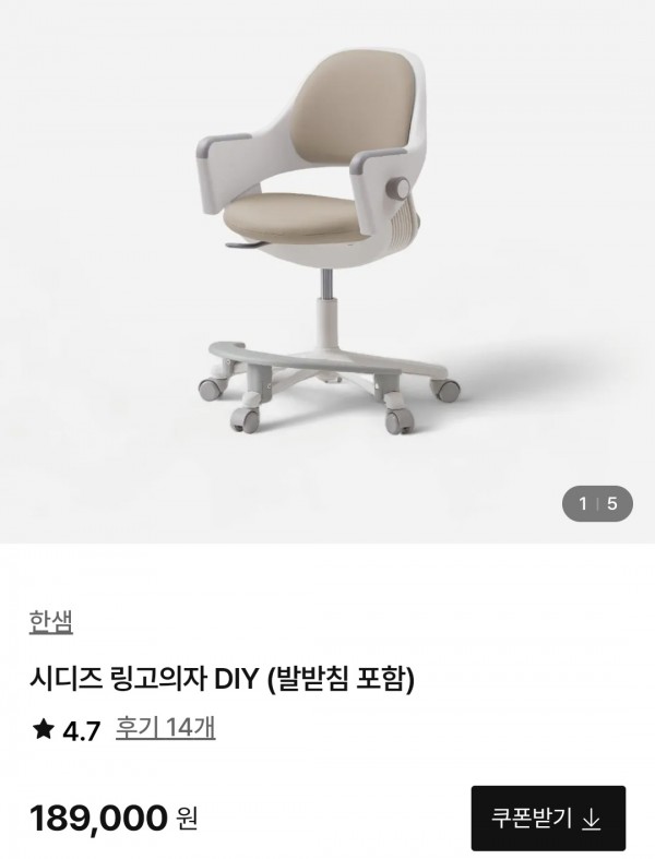팝니다 한샘 시디즈 링고의자 (발받침 어린이 책상용 의자)