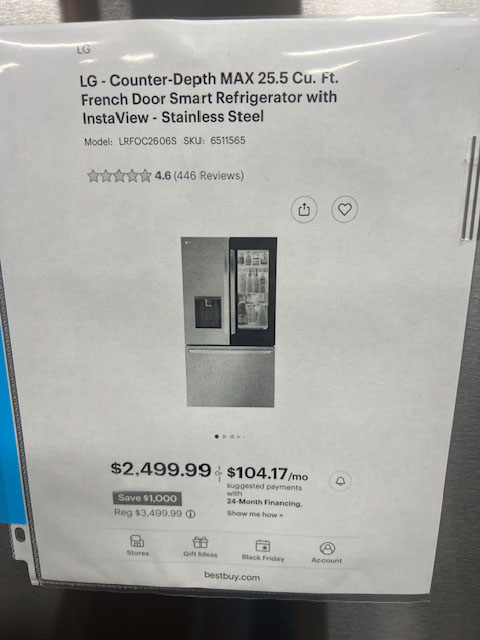 $1499 입니다. (Reg. $3499) SAVE $2000 NOW!25.5 cu ft Counter Depth MAX 냉장고 입니다