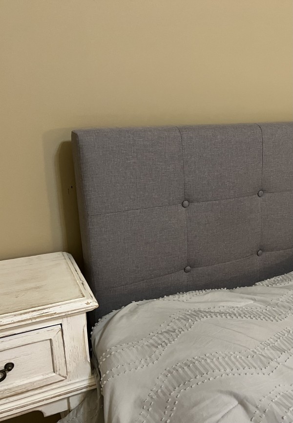 킹 사이즈 회색 천으로 된 침대 입니다. 상태 아주 좋으며 밑에 매트리스 박스 트윈사인즈 박스 두개도 드립니다. 박스는 사용감이 있지만 위에 킹 사이즈 메트리스나 트윈 사이즈 두개를 올려놓으시면 아무 지장 없습니다.