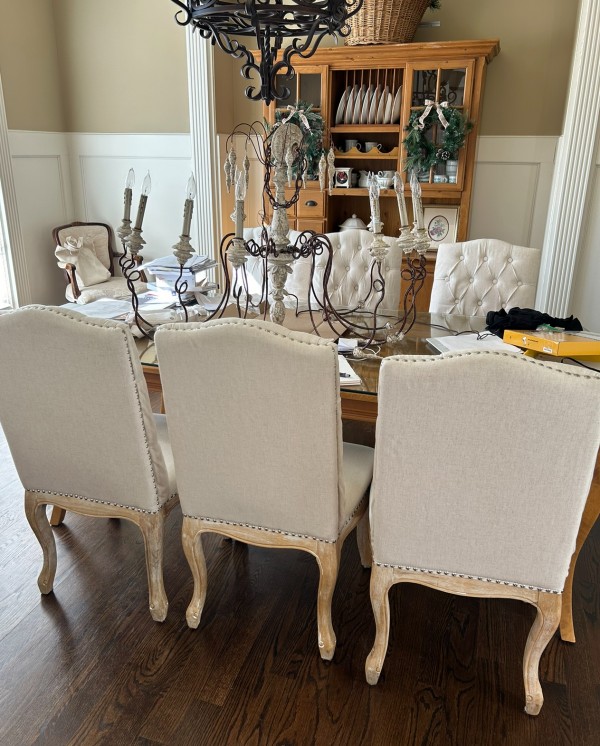 팝니다 린넨 패브릭 식탁의자 6개