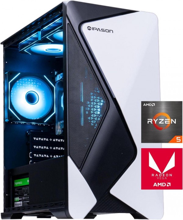 IPASON - Gaming desktop - AMD Ryzen 5 5600G 6 core 3.9GHz - 16GB DDR4 3200MHz - 1TB M.2 NVMe - 550W PSU - Windows 11 home - WIFI - Gaming PC