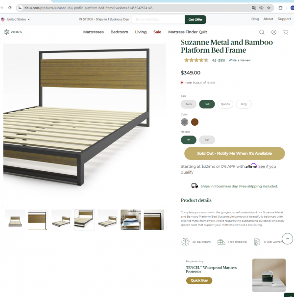 팝니다 지누스 풀사이즈 베드 프레임 (Full Size Bed Frame)