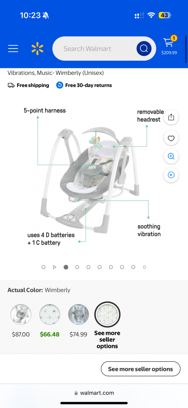 https://www.walmart.com/ip/Ingenuity-2-in-1-Portable-Baby-Swing-Infant-Seat-with-Vibrations-Music-Wimberly-Unisex/227297544