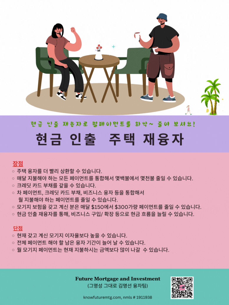 현금 인출 재융자로 월페이먼트를 화악 ~ 줄여 보셔요! ![]()