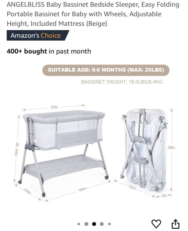 4. 폴드 가능한 바퀴달린 베시넷 - $50