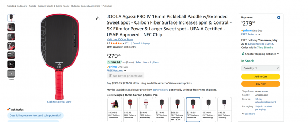 피클볼 채 JOOLA Agassi PRO IV 16mm 팝니다 가격 $220