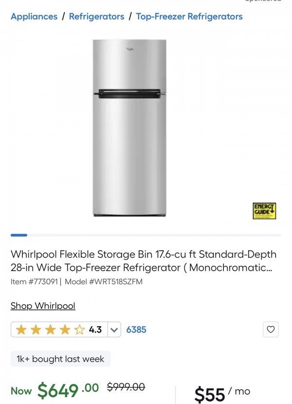 https://www.lowes.com/pd/Whirlpool-17-6-cu-ft-Top-Freezer-Refrigerator-with-Optional-sold-separately-Compatible-EZ-Connect-Ice-Maker-Kit-Stainless-Steel/5013699489