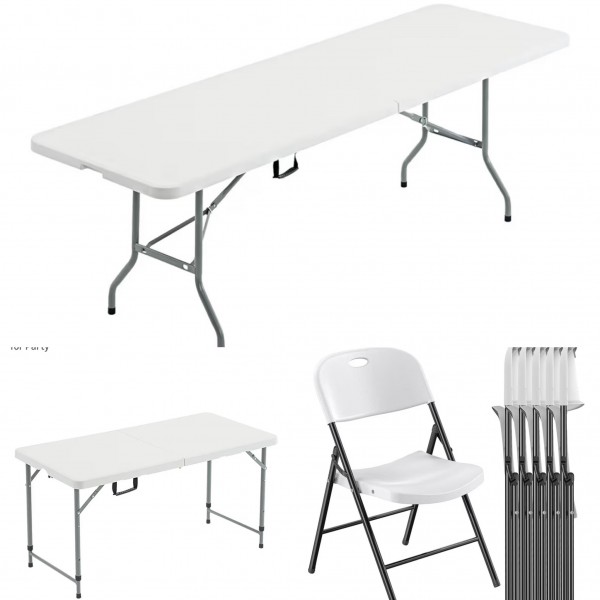 4. 접이식 테이블 2개 (중형·대형) + 의자 4개 — $150
