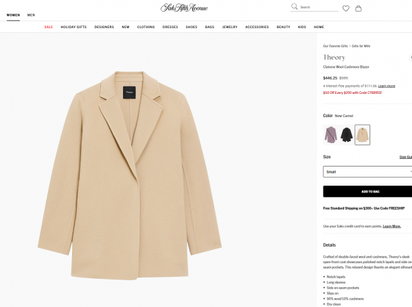 1. Theory 울캐쉬미어코트 Size: s Color: New camel $200불