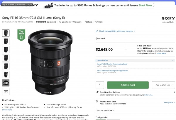 Sony FE 16-35mm f/2.8 GM II Lens (Sony E) 팝니다