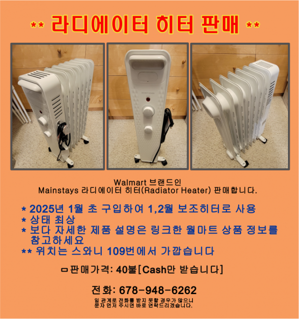 팝니다 라디에이터 히터 판매합니다 [상태 최상 $40]