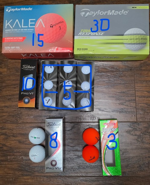 모두 새것이고, 두번째 골프공 사진은 새것이지만 promotion marked 된것이라 (회사 이름 써져 있음) 조금 싸게 팝니다.