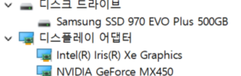 - NVIDIA GeForce MX450 (2GB, 듀얼 그래픽) -
