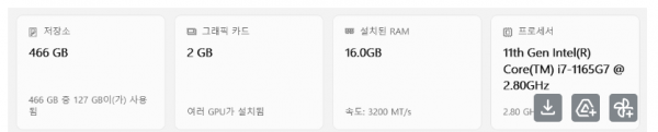 프로세서 (CPU): Intel 11세대 Core i7-1165G7 @ 2.80GHz